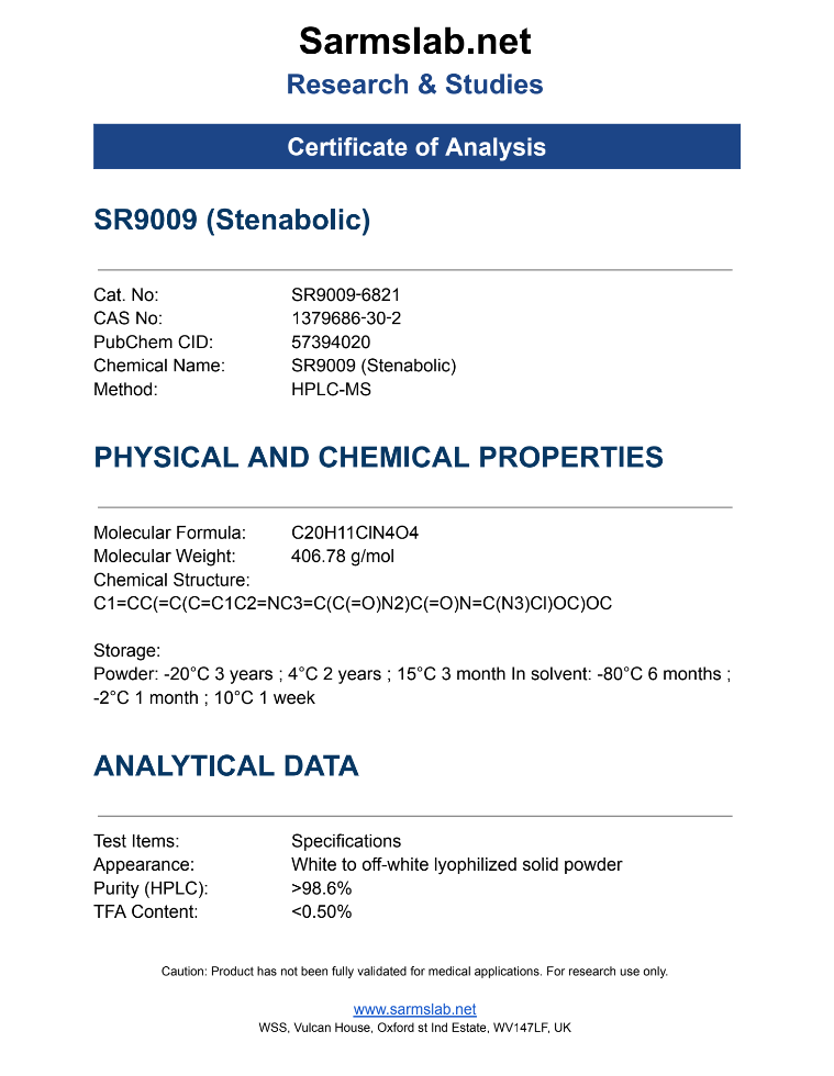 - Stenabolic (SR9009) – 25mg per capsule