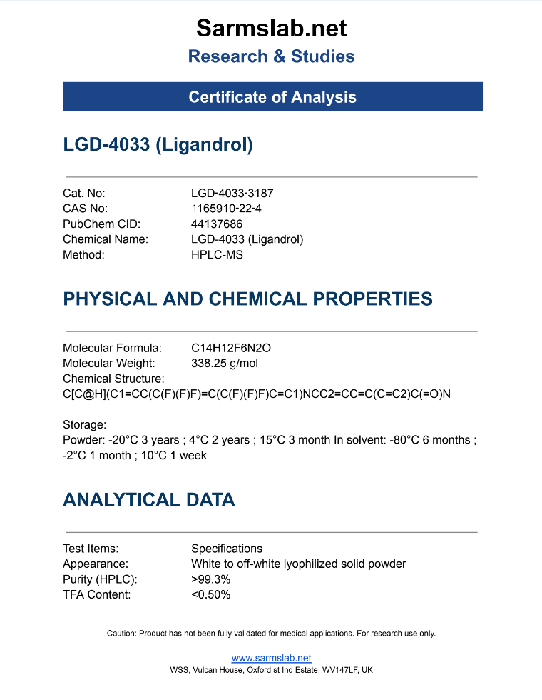 • LGD-4033 (Ligandrol) – 25mg per capsule
