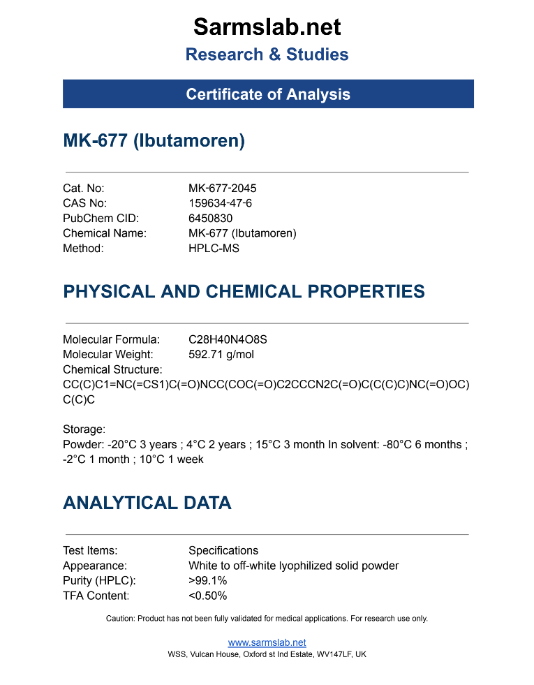 • Recovery & Growth Factor Support: MK-677 facilitates research into accelerated recovery rates and the stimulation of Growth Hormone for enhanced tissue repair studies.