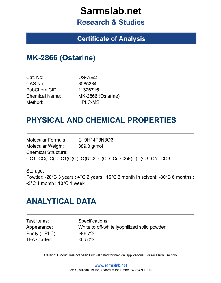 All products, including Ostarine (MK-2866), are for laboratory research purposes only. They are not intended for human consumption and should be handled according to local regulations.